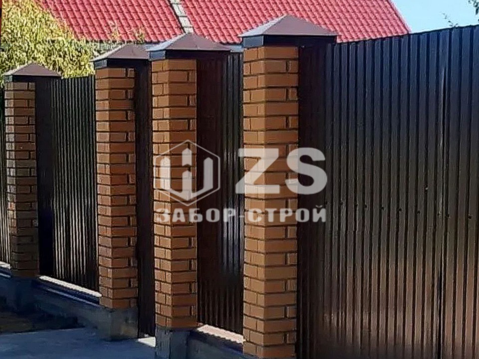 Ленточный с кирпичными столбами